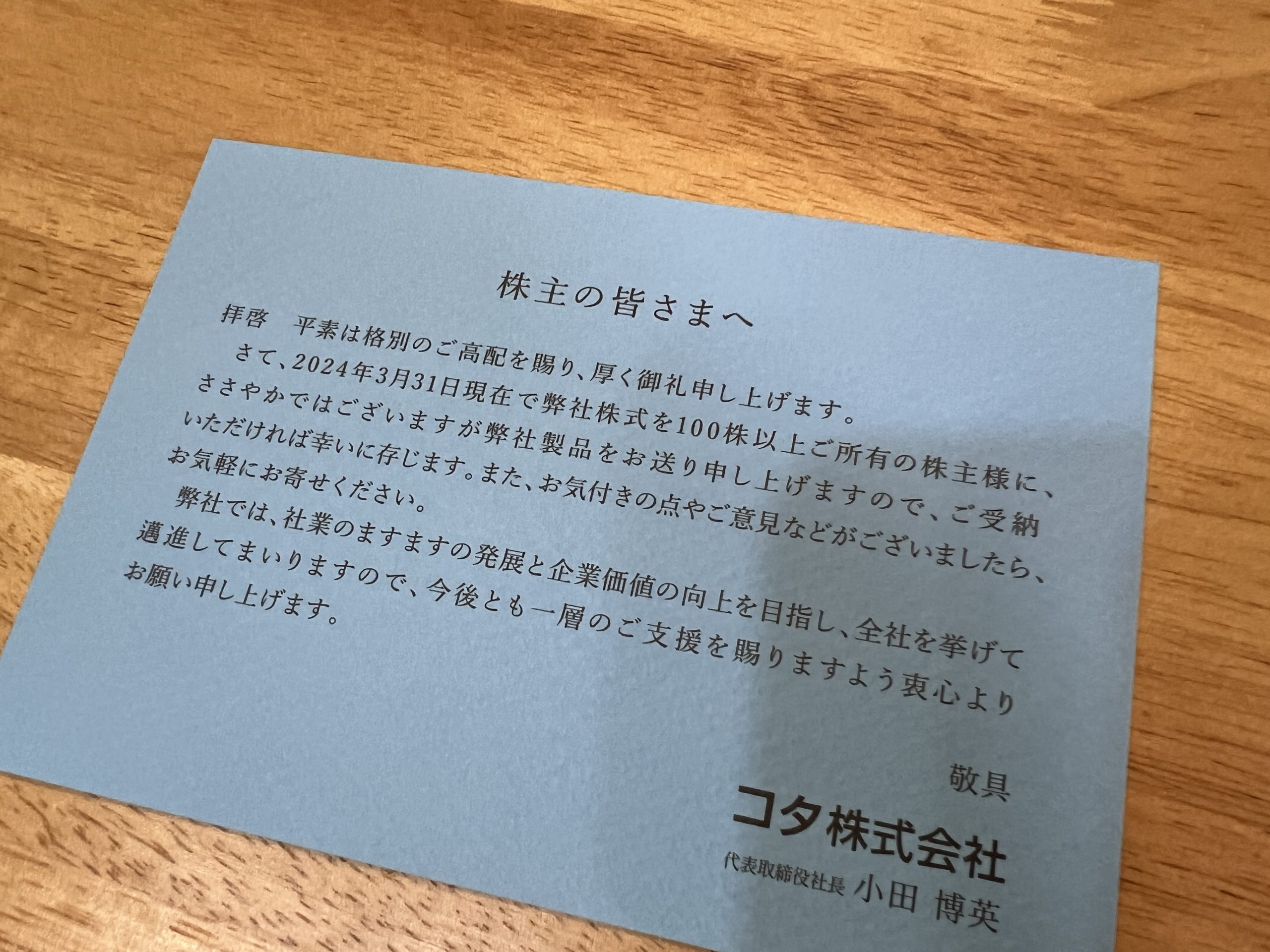 コタの株主優待の紹介でした!