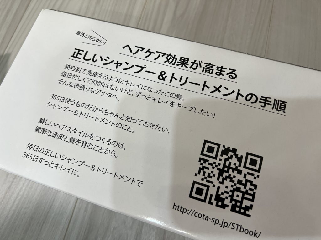 箱の裏には、ご丁寧に「正しいシャンプー&トリートメントの手順を見ることができるQRコードが記載されていました。
