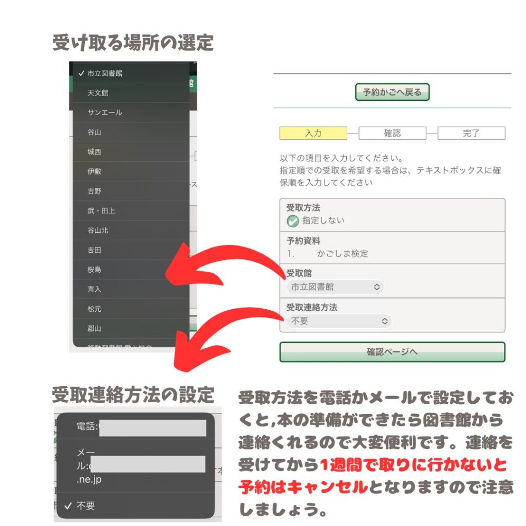 図書館で予約した本の準備ができたら、設定した方法で図書館から連絡が来るよ。