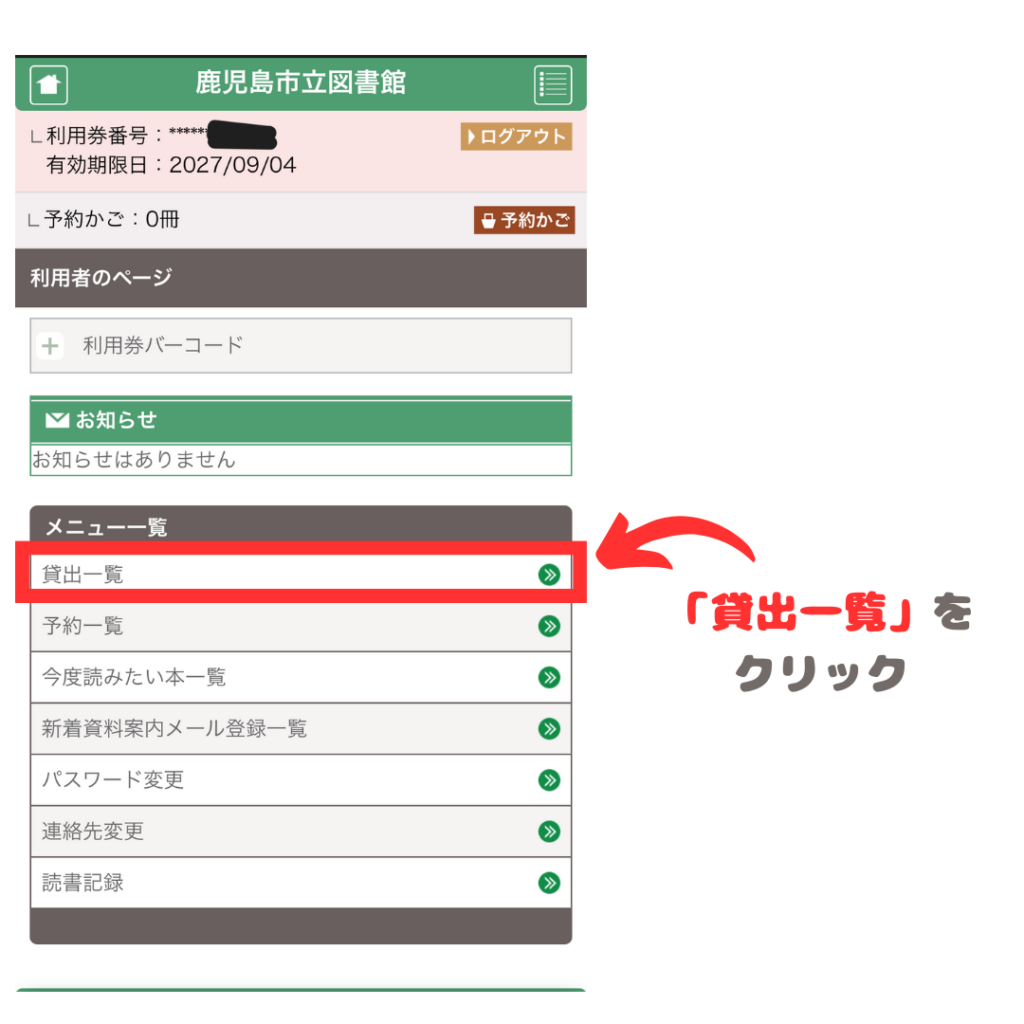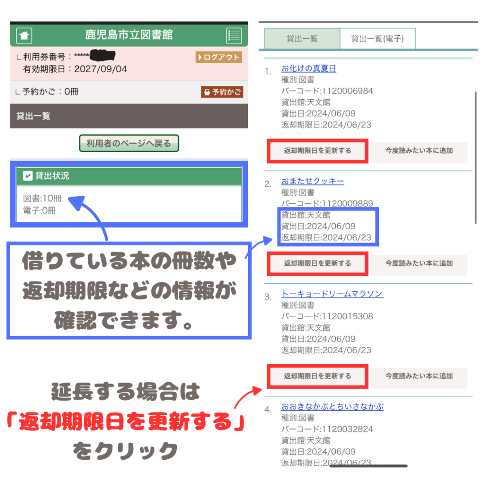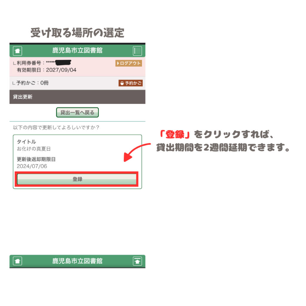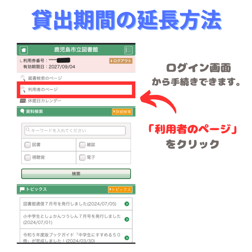 2週間で読み切れない時などはホームページからログインして延長の申請をしよう!